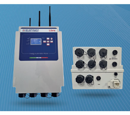 Libra Energy Automation Panel: is a modular solution for load monitoring, supporting up to 7 three-phase and/or 21 single-phase measurements. It can include a UPS, UMTS router, and integration of environmental sensors. Quick to install and easily configurable, it provides a tailor-made plug & play solution for energy automation.