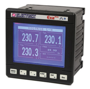 Integrated datalogger for recording four harmonic components, total and per-phase energy counters, and average, minimum, and maximum values of voltage, current, power, and frequency.